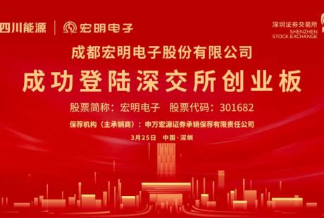 3月25日上午9时25分,随着深圳证券交易所上市大厅的钟声响起,成都宏明电子股份有限公司(股票代码:301682,以下简称“宏明电子”)在深交所创业板正式敲钟上市,成为四川“十五五”开...