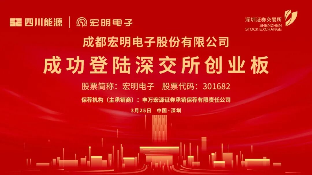 3月25日上午9时25分,随着深圳证券交易所上市大厅的钟声响起,成都宏明电子股份有限公司(股票代码:301682,以下简称“宏明电子”)在深交所创业板正式敲钟上市,成为四川“十五五”开局的“第一股”。